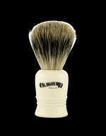 Best Badger Shave Brush with cream handle. Brush is 4 1/8" high with a 21 mm knot size. Best Badger Hair is the finer & more pliable hairs from the badger's coat. The head of the brush is shaped not trimmed. Made in England.