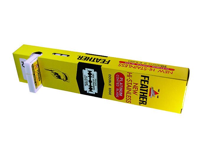 Feather's Hi-Stainless Steel Double-Edge Razor Blades feature twenty of their remarkable Japanese stainless steel blades that have garnered international acclaim since 1932.