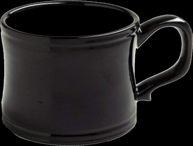 This solid black shave mug was designed with the "no frills" shaver in mind. It's larger capacity hold a super shave soap with plenty of room left over to work up mountains of lather. Extra large size handle will accommodate a real man's fingers. Col Conk 3.15 oz. soap included (scents will vary). Boxed.