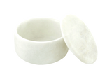 The marble bowl is referred to as "Opaque White" due to the many different grayish striations found in the metamorphosed limestone. Marble is a non-foliated metamorphic rock composed of recrystallized carbonate minerals, most commonly calcite or dolomite, therefore no two bowls are exactly alike.
