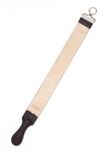 This is a "must have" for all straight razor shavers. A strop helps maintain a fine cutting edge on a straight razor and should be used regularly. This strop combines premium quality leather on one side with canvas on the reverse. The canvas side produces the same effect as a light honing and extends the period between honings. It features a nickel plated swivel loop for hanging and a padded leather handle. It's a beautiful strop and it comes ready to use.