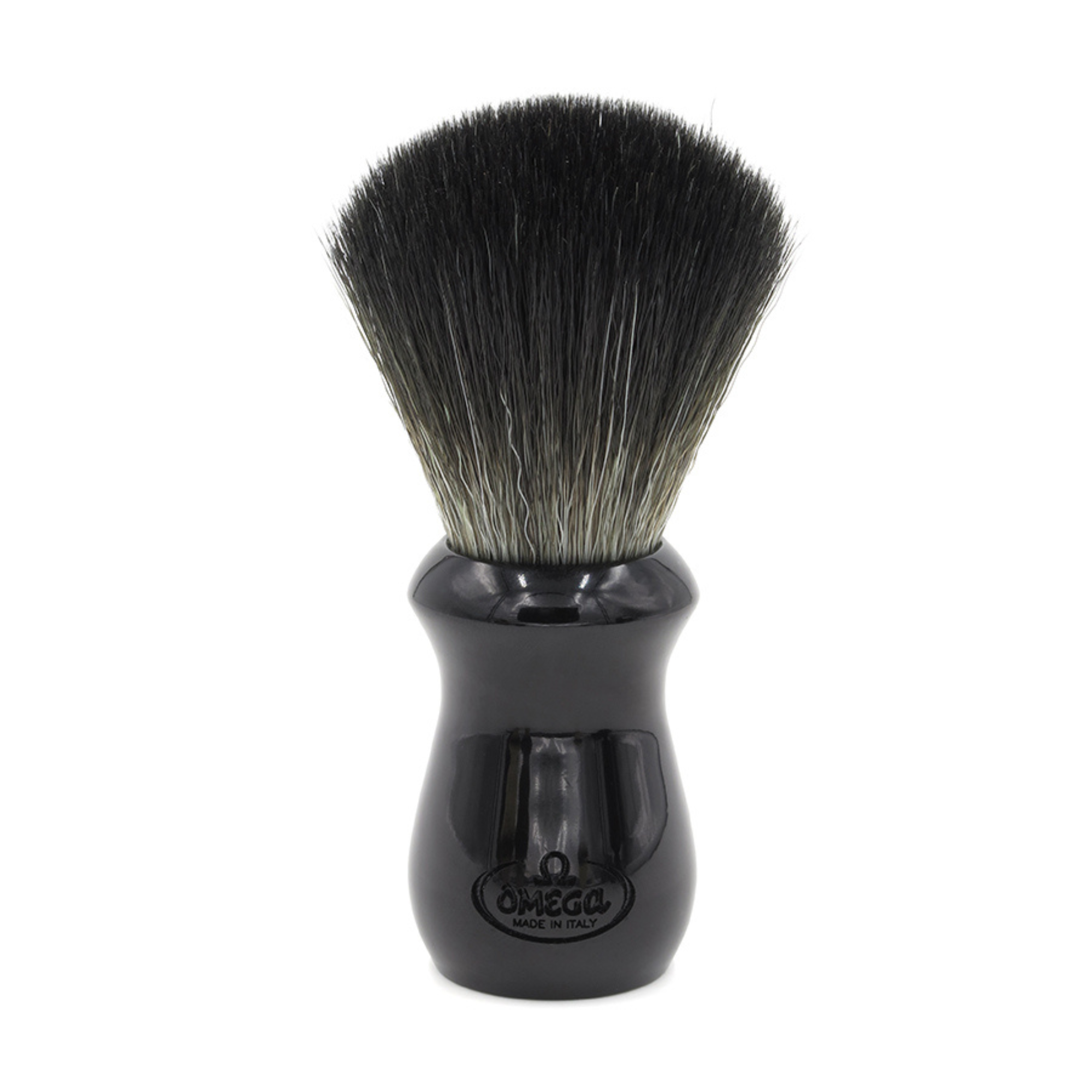 Omega BLACK Hi-Brush fiber shaving brush, black resin handle.