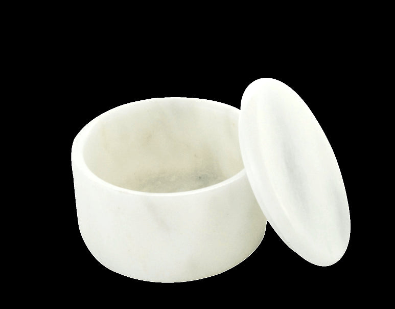 The marble bowl is referred to as "Opaque White" due to the many different grayish striations found in the metamorphosed limestone. Marble is a non-foliated metamorphic rock composed of recrystallized carbonate minerals, most commonly calcite or dolomite, therefore no two bowls are exactly alike.