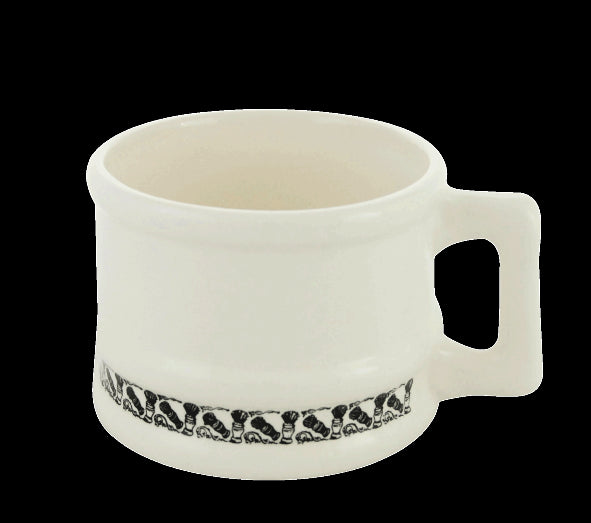 This jumbo sized white shave mug has a black shave brush decal accenting the bottom rim. It's larger capacity hold a super shave soap with plenty of room left over to work up mountains of lather. Designed to fit comfortably in a large man's hand. Col Conk 3.15 oz soap included (scents will vary). Boxed.